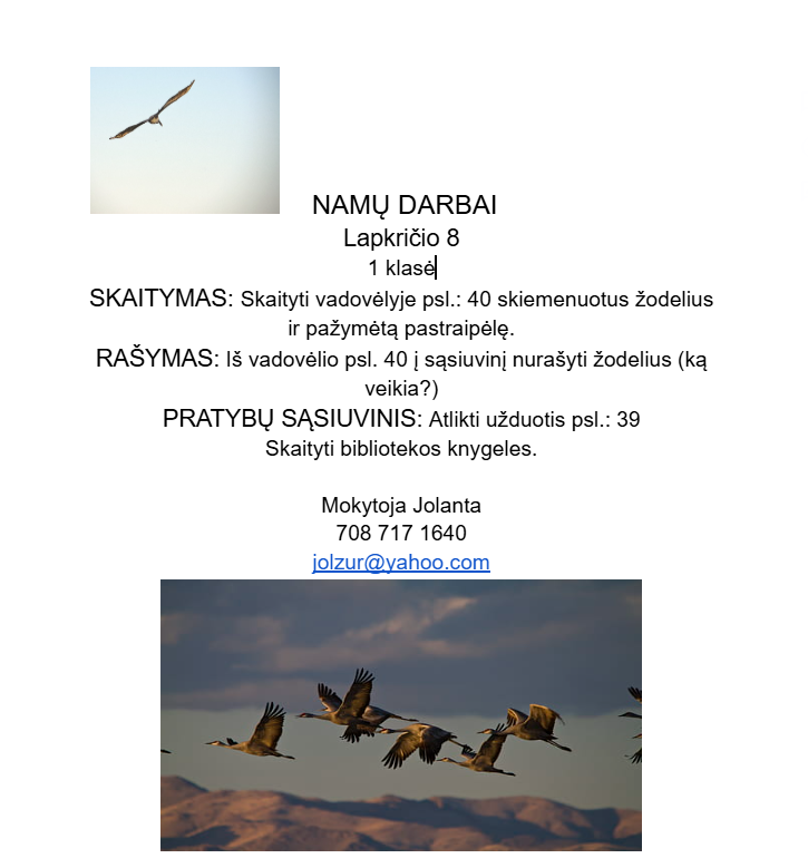 Namų darbai 2025-2026 mokslo metų 1 klasei.